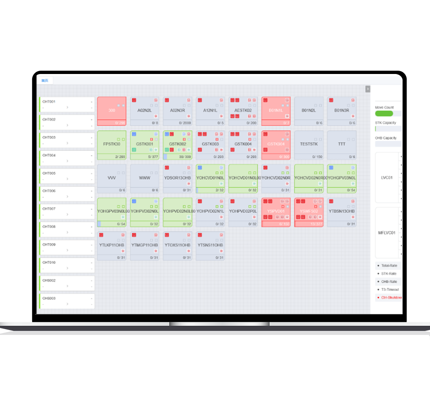 1.管理MES下达的搬运指令,并且进行有效率的路径管理与设计自动化机制来排除AMHS异常状况,实现生产过程的控制和监控。